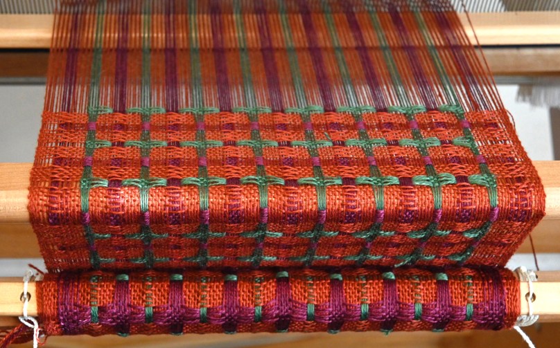 Also, the floats on the sides are waaaaaaay to long, probably due to my unsure selvedge management. I may be tinkering with the draft a bit on each side in hopes of making that part of the weaving a little easier.