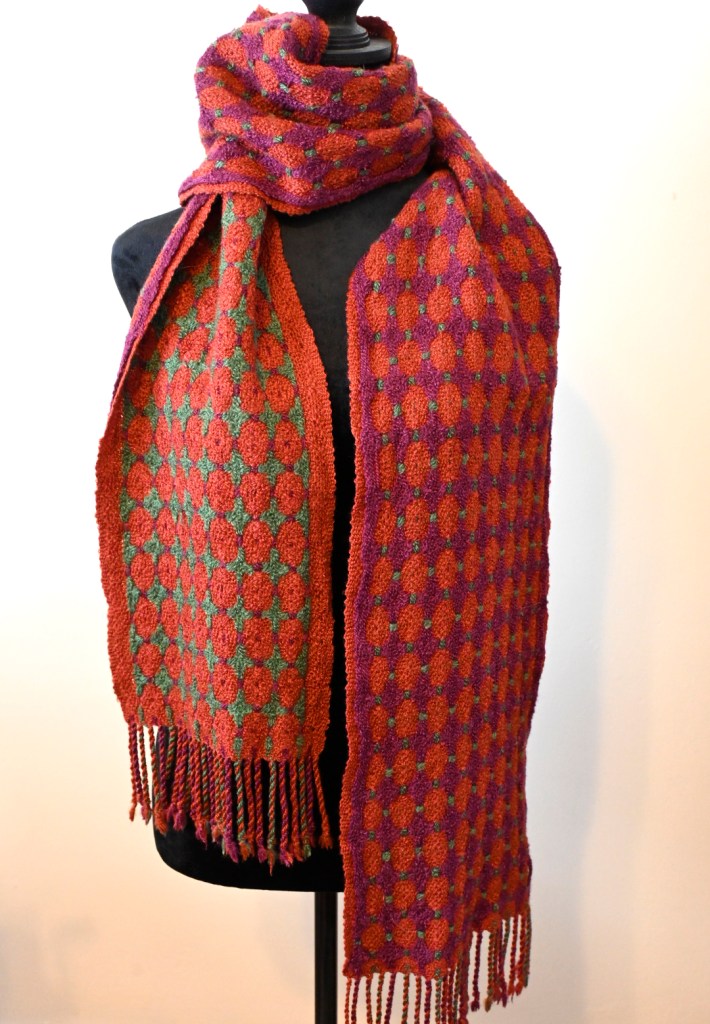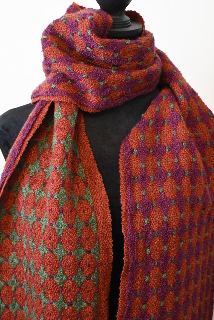My January weaving project was this scarf in Deflected Double Weave. It is my interpretation of Melon-Colored Baby by Elisabeth Hill of plainweave on Etsy.