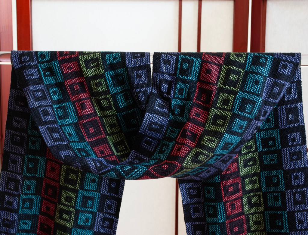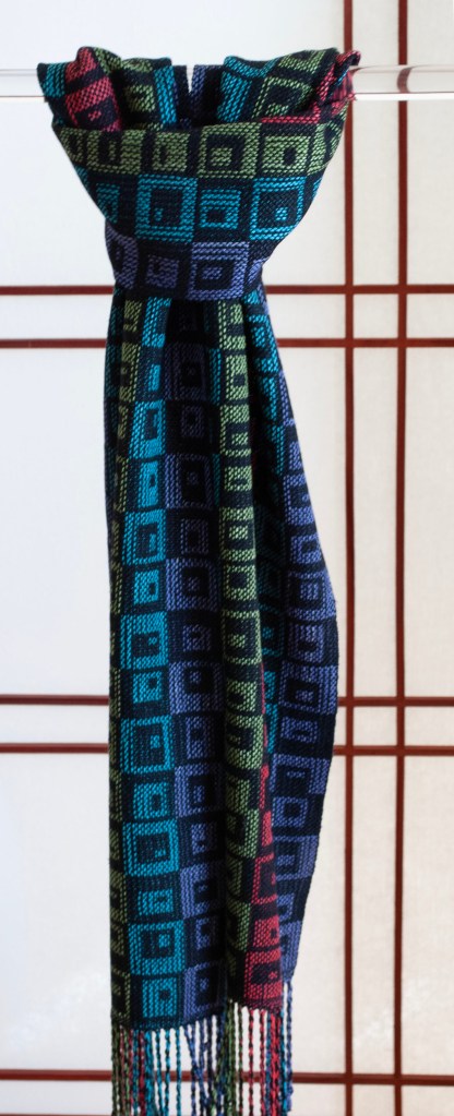 They loved the colors and designs and suddenly I had another Handwoven Magazine publication. My last one was in 2013, with a Diversified Plain Weave Circles Scarf in cotton and rayon chenille which you can read about here. So it’s been a while. But it’s still fun.