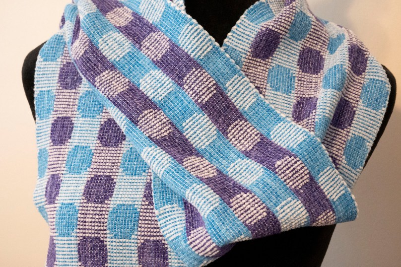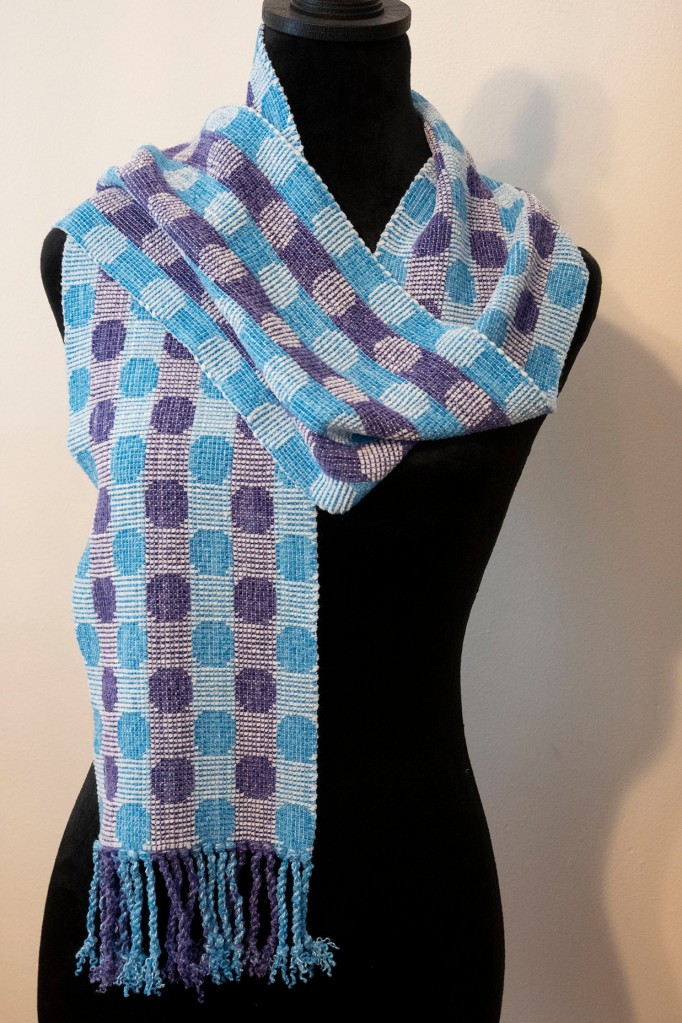New pattern now available on Etsy! Here is a fun new scarf pattern in Diversified Plain Weave, now available in my Etsy shop. The pattern is my ubiquitous circles woven on 8 harnesses in 8/2 rayon and 1450 ypp rayon chenille.