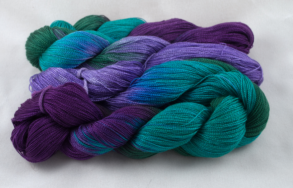 From now on, I will be doing handpainted yarns to order in my Etsy shop. Instead of painting yarns and waiting for the public to notice them, I will be offering a selection of handpainted colorways which will always be available to order! I will also be offering each colorway in a selection of fiber types.