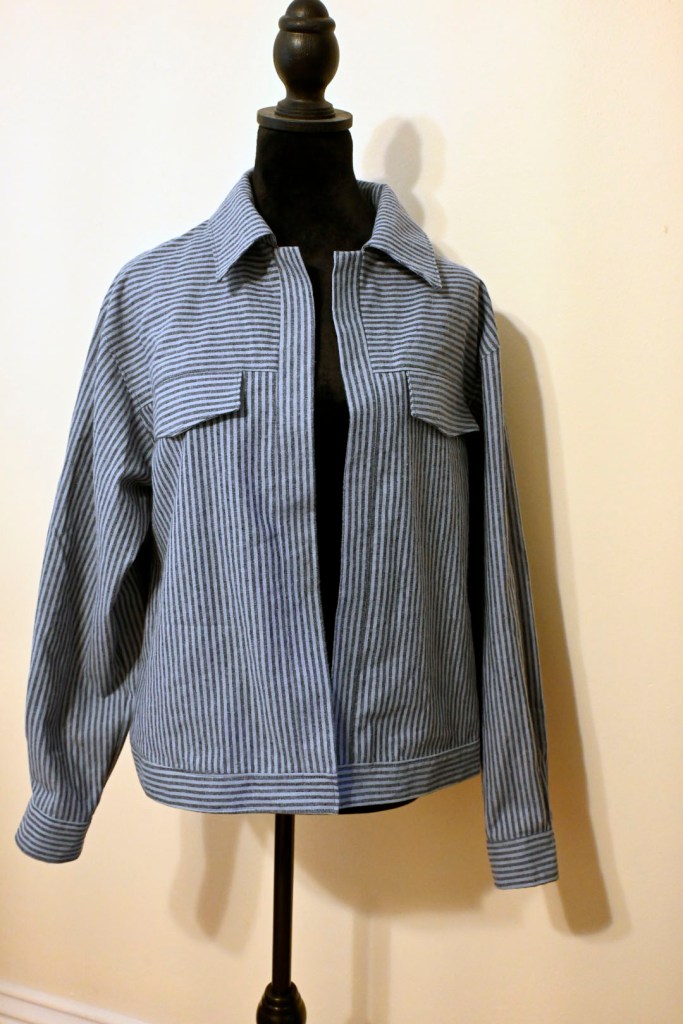 On the sewing front, I made this jeans jacket style jacket from some cotton/linen fabric I picked up about 3 years ago. I took the picture before I had buttons to put on it. Now, I do, and it’s all done. Many mistakes were made, but it still looks fine!