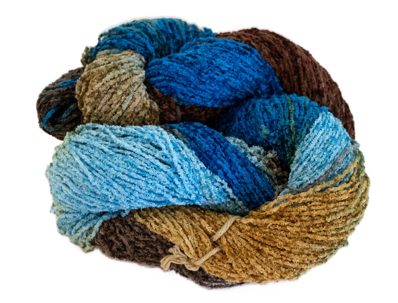 I used 20/2 cotton for the ground warp and tabby weft, and 1450 ypp rayon chenille for the pattern warp and weft.