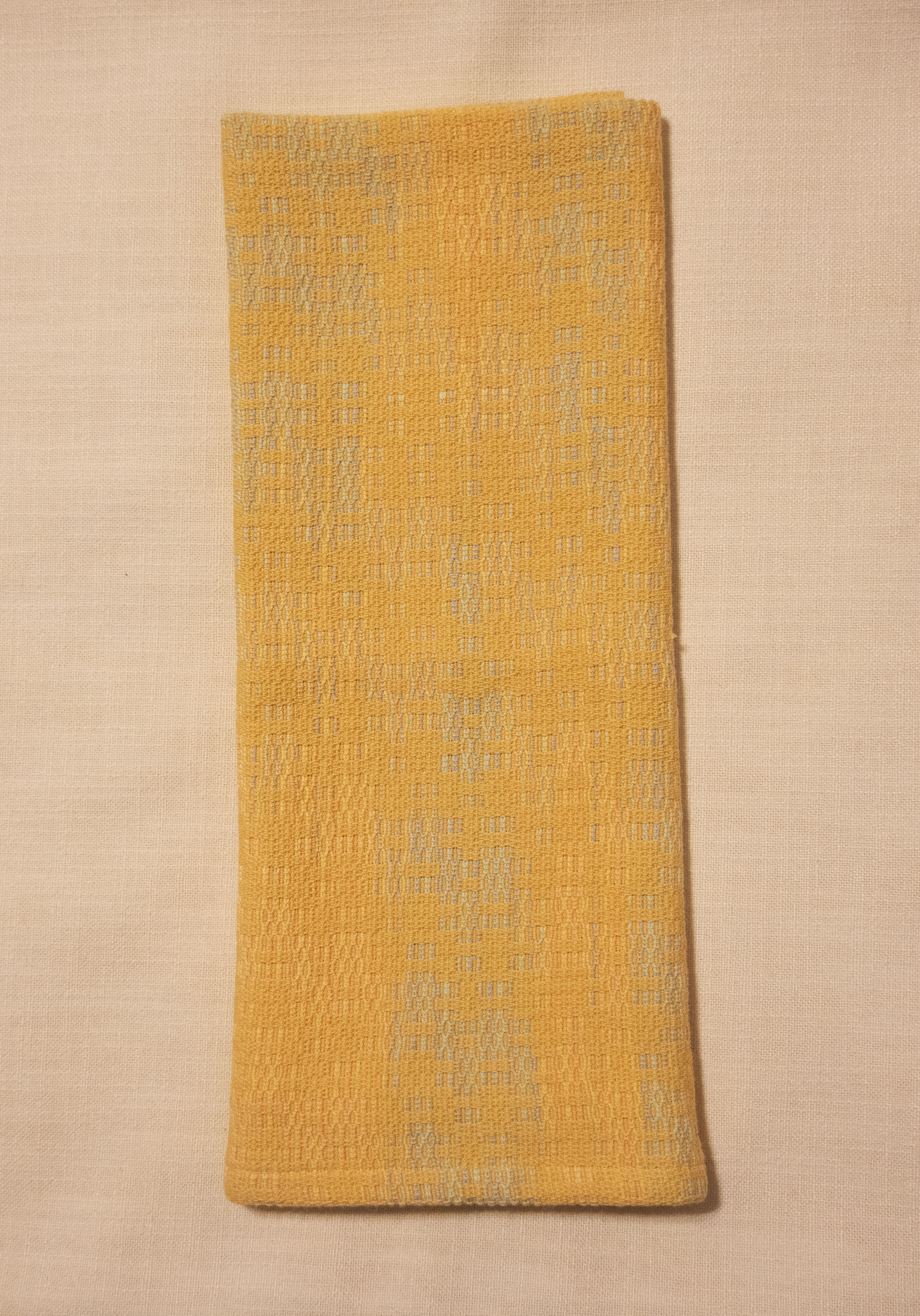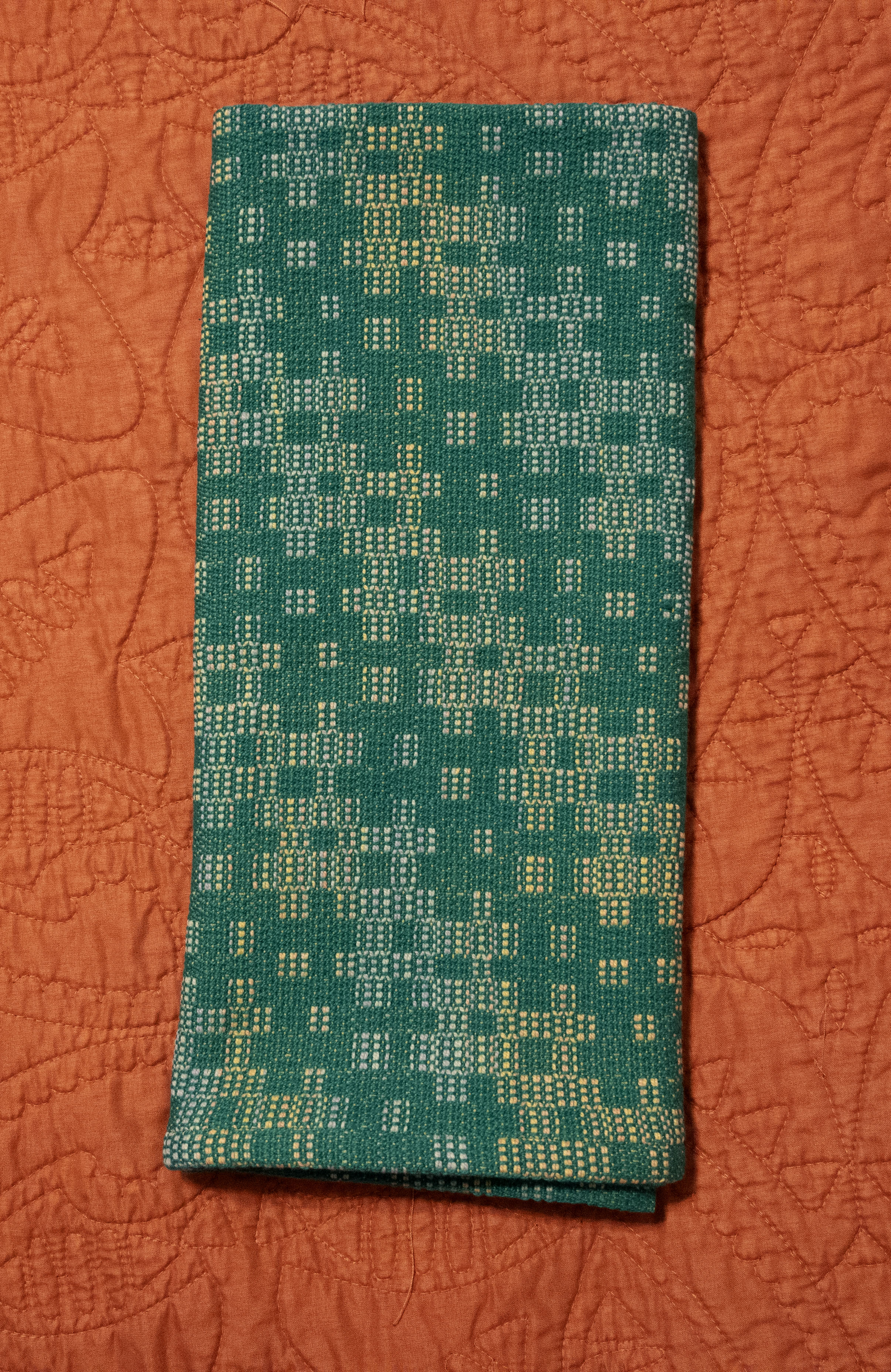 Towel # 5: I used a mercerized 10/2 cotton for tabby weft, mainly because the color worked best. The hand is ever so slightly lighter than #4.